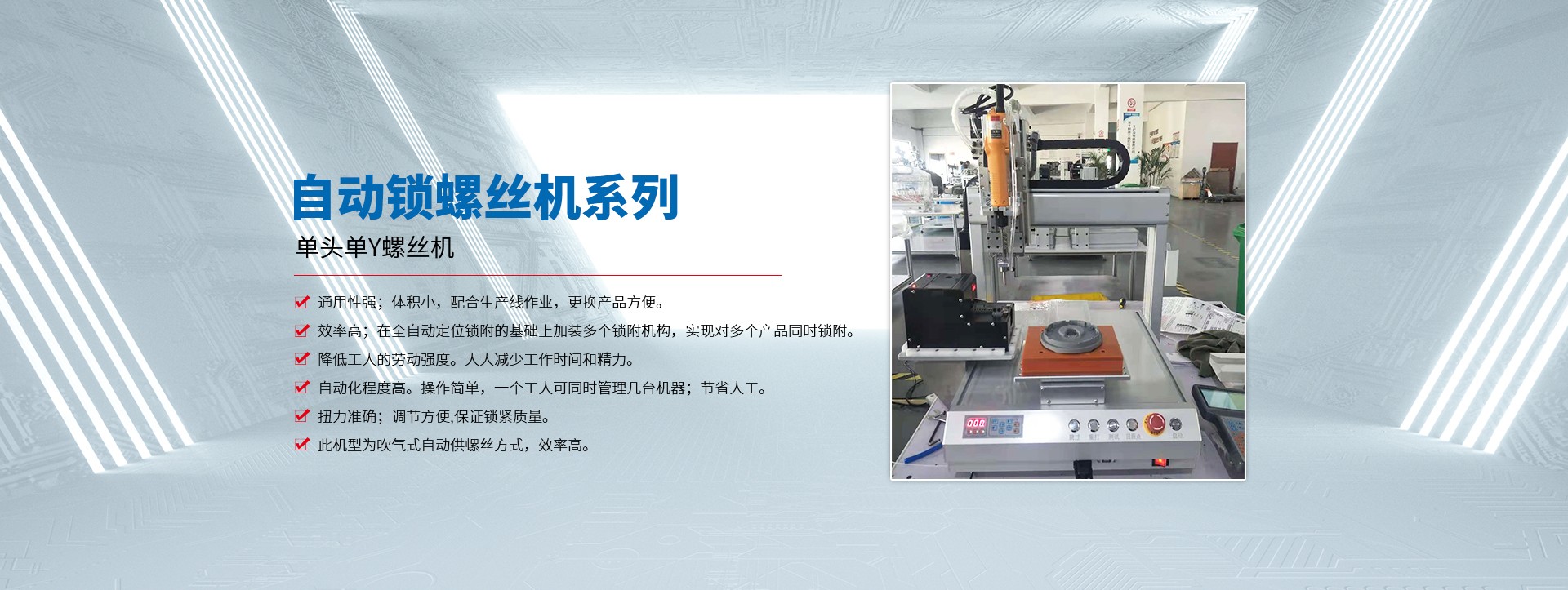 蘇州拓航機(jī)械設(shè)備有限公司成立于2016年,是一家集研發(fā)、制造、銷(xiāo)售及技術(shù)服務(wù)于一體的自動(dòng)化設(shè)備生產(chǎn)廠家,主營(yíng)產(chǎn)品有自動(dòng)螺絲機(jī)、自動(dòng)焊錫機(jī)、自動(dòng)點(diǎn)膠機(jī)、自動(dòng)灌膠機(jī) 脈沖熱壓機(jī),及各類(lèi)型的非標(biāo)自動(dòng)化設(shè)備。